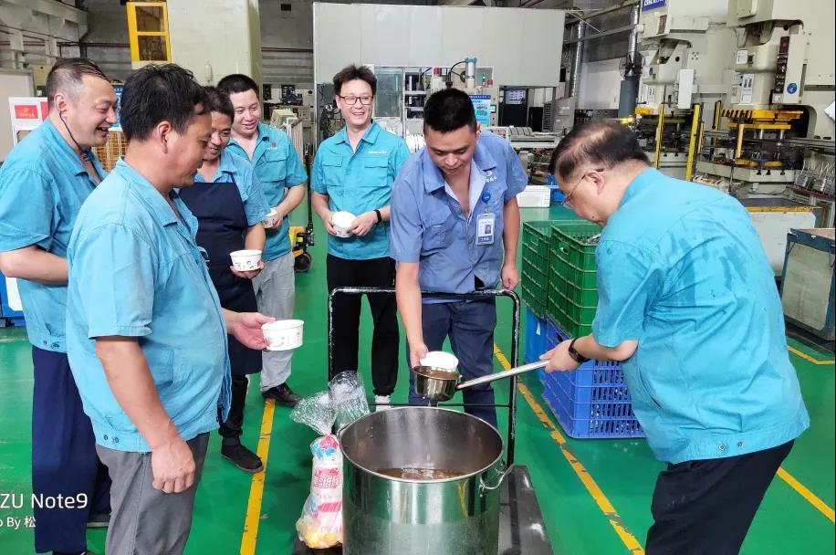 公司工會主席,監(jiān)事會主席譚萬江帶隊到車間生產(chǎn)一線,將一碗碗冰爽的綠豆湯送到職工手中,為他們帶去夏日的一絲清涼。