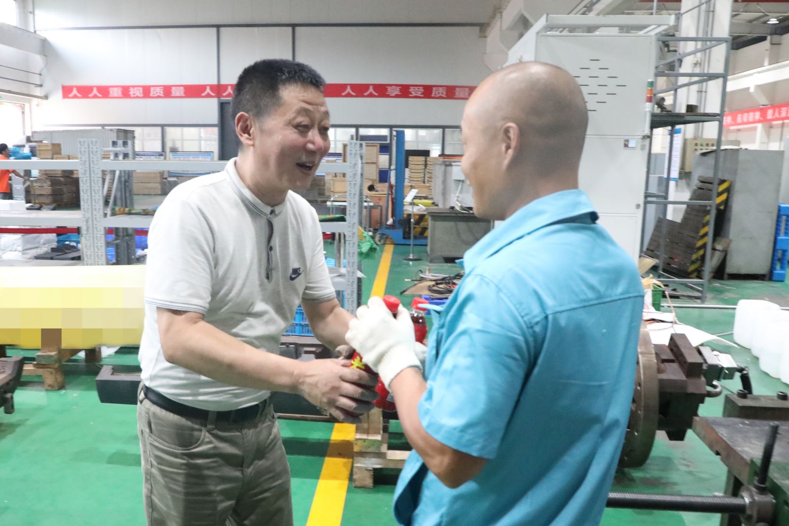 在102車間和前衛(wèi)表業(yè)金屬制品和塑壓成型車間,廖軍每到一處,為堅守崗位的職工送去清涼飲品,并詳細詢問和了解職工的生產(chǎn)、生活情況,叮囑大家要時刻牢記把安全生產(chǎn)放在第一位,做好防暑降溫工作。慰問結束后,廖軍還觀看了公司產(chǎn)品展示廳。