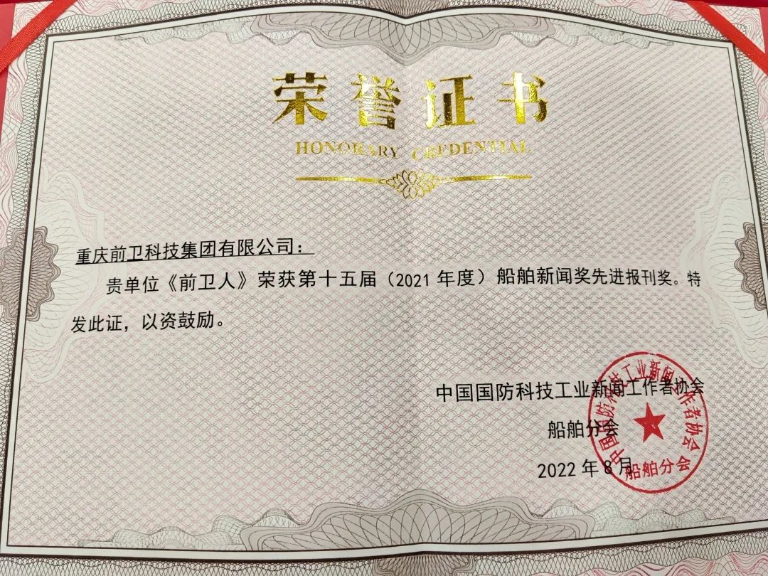 8月15日上午,在昆明召開的2022年全國船舶新聞業(yè)務(wù)培訓(xùn)班開班儀式上,公司報刊《前衛(wèi)人》榮獲第十五屆(2021年度)船舶新聞獎先進(jìn)報刊獎!
